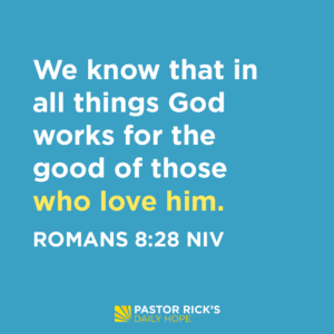 - All things work for the good for those who love the Lord and are called unto His purpose. (Romans 8:28)